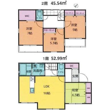 | 間取り(内訳) | 4LDK(和4.5洋7/5.3/5LDK16) | 建物面積 | 98.53㎡ |