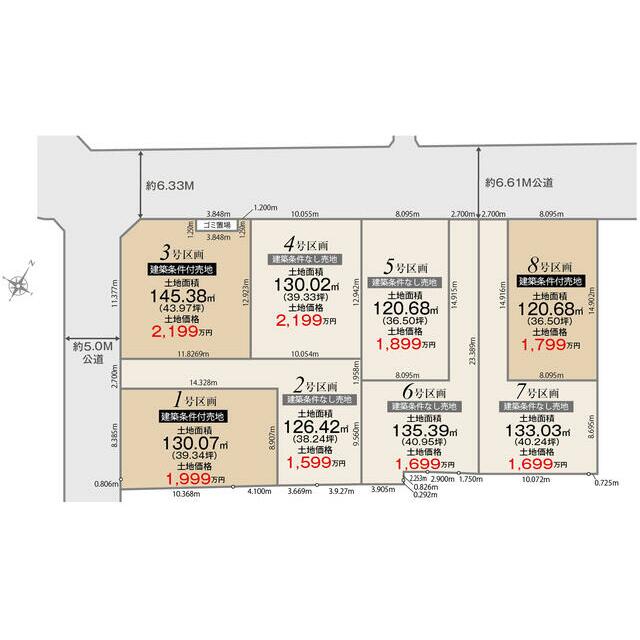 | 土地面積 | 実測 126.42㎡ | 坪数 | 38.24坪 | 坪単価 | 41.82万円 |